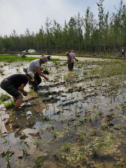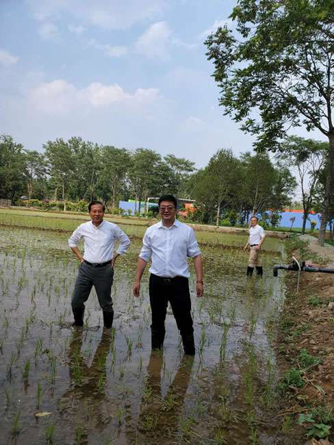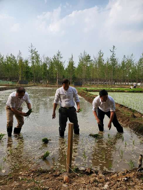 日前,亚新在线官网-亚新(中国)董事长梁雨、总裁谢俊率集团高级管理人员来到位于北京西四环外的锦绣大地生态园,在景色迷人的玉泉山山下,同志们挽起裤脚跃进田里,生态园农业技术员一边弓腰示范,一边讲解道“插秧是个技术活,将秧苗窝在虎口处,既要轻又要稳,用巧劲儿将秧苗抛在泥里,不能抛得太深,又要确保植保灌溉时,秧苗不漂浮在水面上。”